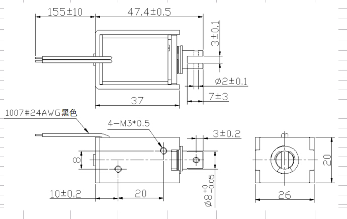 一、U0837L推拉式電磁鐵的尺寸圖
