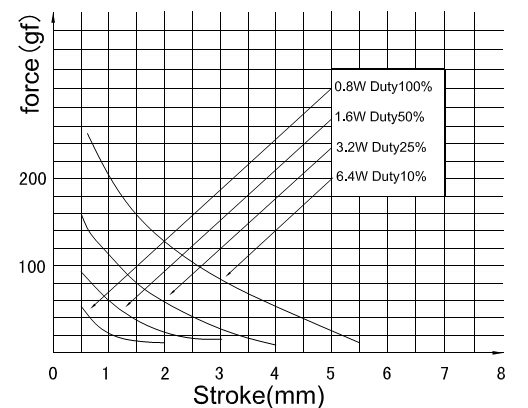 縱向:代表電磁鐵在對應行程時的力量 單位為克(g)